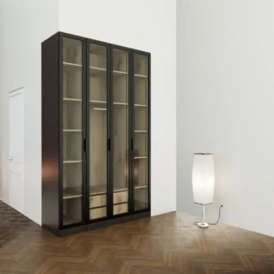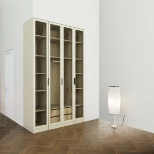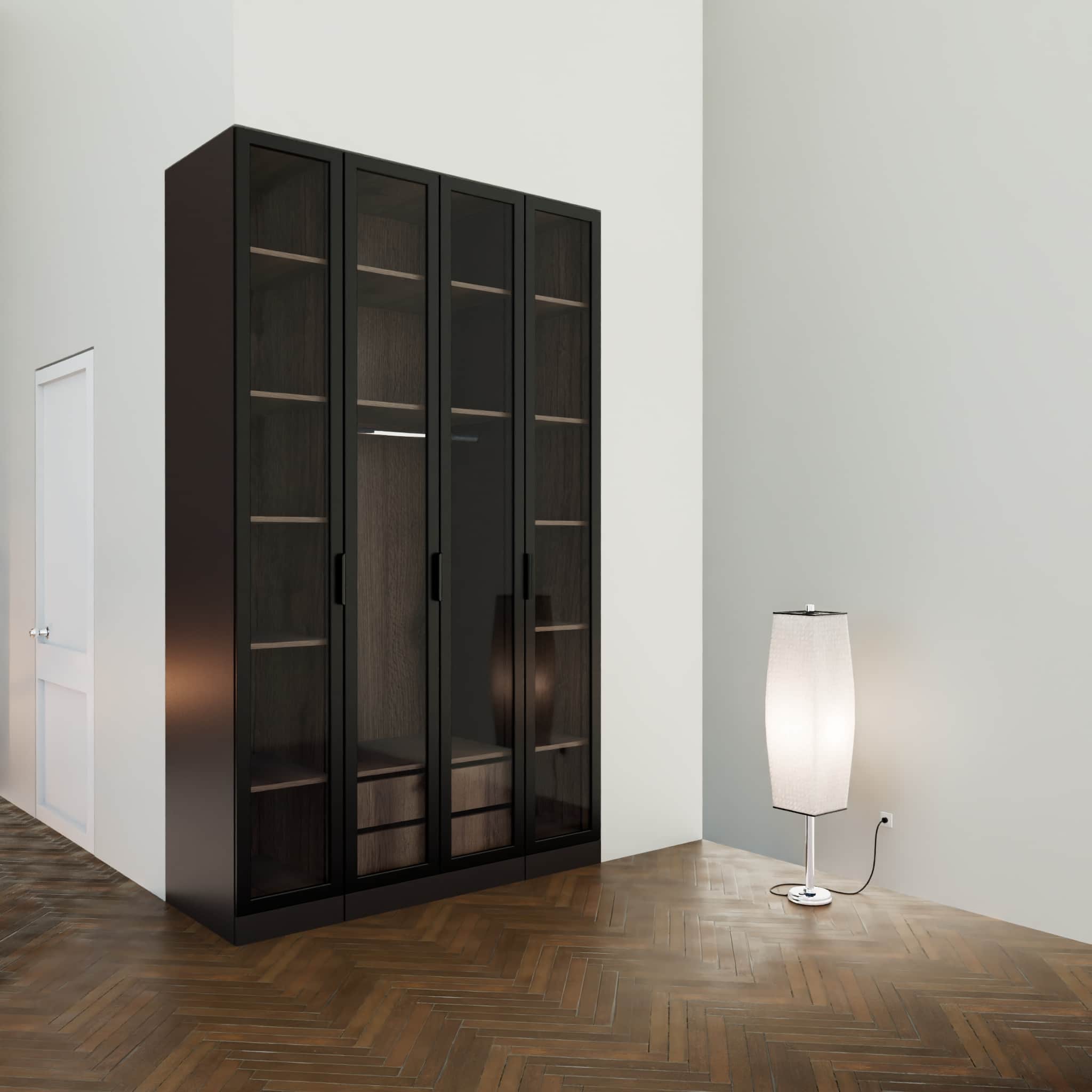 ארון פתיחה דגם דניאלה .4 דלתות טריקה שקטה זכוכית 50%אחוז מושחר אנטי סאן .2 צבעים חוץ שחור או לבן.2 צבעי פנים לבחירה .תוספת זוג מגירות טריקה שקטה